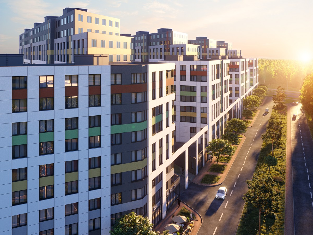 В 5 корпусах переменной высотности (9-13 этажей) предлагается богатый выбор планировок и метражей: от студий до многокомнатных видовых апартаментов.