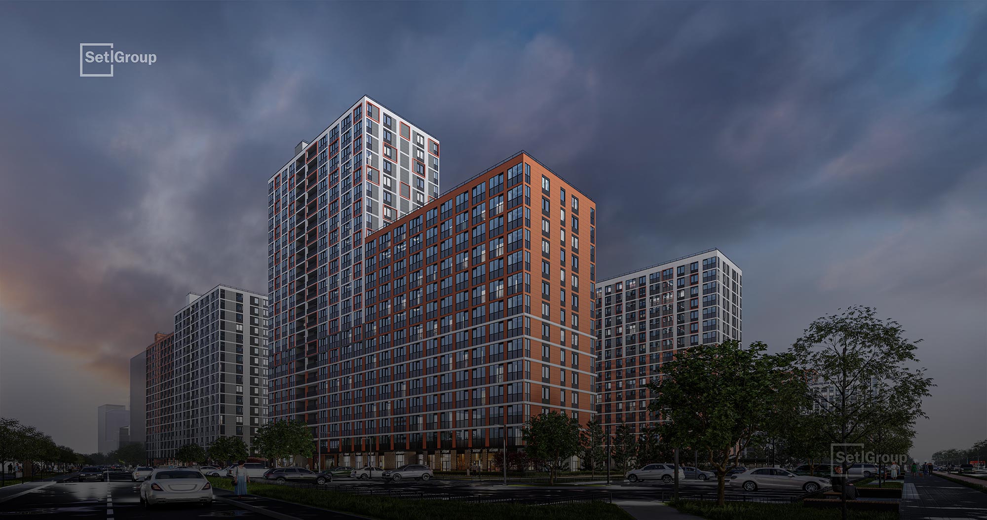 Дома в «Городе звёзд» переменной этажности — от 12 до 23 этажей. Высокие секции защищают от ветра и радуют жителей верхних этажей красотой панорамных видов, а низкие — обеспечивают попадание солнца и максимально долгое освещение внутренних пространств.