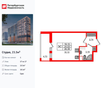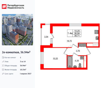 1-комнатная квартира, 36.94м2 на 3-м этаже от 6 300 209 ₽