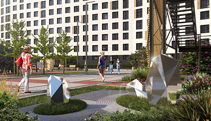 На территории двора ЖК «Графика» будут установлены современные арт-объекты, чтобы подчеркнуть творческую атмосферу комплекса и его многогранный характер.