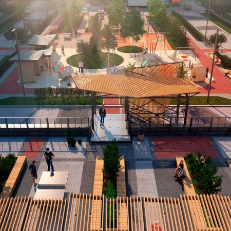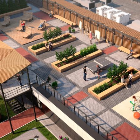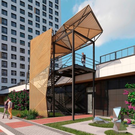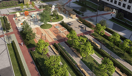 Приватный двор с отдельным входом также будет благоустроен зонами для спорта и отдыха, которые будут размещены на крышах коммерческих помещений ЖК «Графика». Именно там будет пространство для активных занятий для души и тела. Жильцы смогут практиковать йогу, проводить тренировки воркаут, а также играть в настольный теннис. На крышах также будет создана комфортная атмосфера для отдыха: удобные деревянные лежаки и уютные скамейки. Пространство украсят гирлянды и клумбы с пышными кустарниками.
