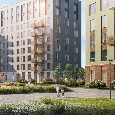 Это комплекс, где приятно жить с комфортом. Архитектура и ландшафтные композиции выполнены с нотами скандинавского стиля. Сочетание сложных натуральных оттенков, прогулочных дорожек из натурального камня и обилия хвойных деревьев позволяет окунуться в неповторимую атмосферу северной сказки. Продуманное зонирование поможет каждому найти занятие себе по душе и интересам. Можно отдыхать на свежем воздухе под навесом, играть с детьми на детских площадках в экостиле, кататься на велосипедах по специально продуманным маршрутам. Приавтные дворы закрыты от машин, поэтому не беспокойтесь о своей безопасности и своих близких. Паркинги выведены за пределами дворов.