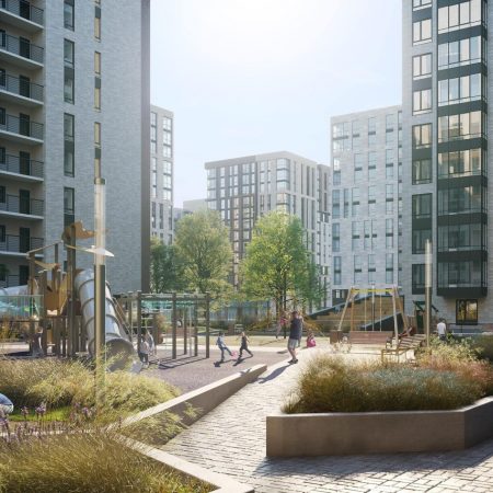 Во дворах ЖК "Нью Тайм" появится променад с шикарным озеленением, где будет так приятно прогуливаться по вечерам. Пока дети играют на благоустроенной площадке родители смогут выпить чаю на летней веранде одного из кафе на первом этаже комплекса или сходить за продуктами в супермаркет.