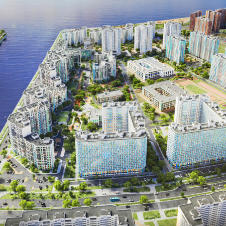 Все квартиры в III очереди строительства ЖК «Огни Залива» с видом на Дудергофский канал, Южно-Приморский парк и Финский залив.