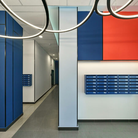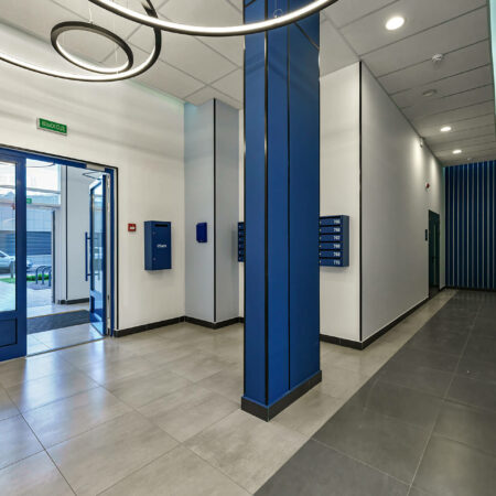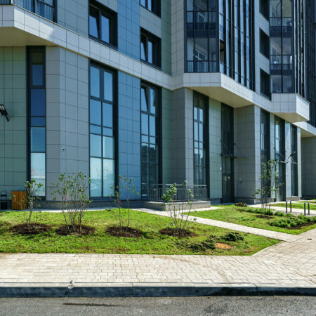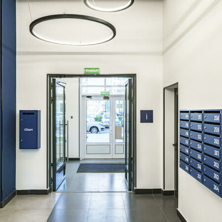 На этаже 3-5 квартир. Входы в парадные — со двора и с Дудергофского канала (ул. Маршала Захарова). Дома построены по монолитной технологии с навесными вентилируемыми фасадами из керамогранитных плит, в остеклении балконов фасадов использованы витражные системы. Здания оборудованы пассажирскими и грузопассажирскими малошумными лифтами импортного производства до уровня паркинга. Всё оборудование и материалы, используемые в строительстве, имеют необходимые лицензии и сертификаты. Большой выбор планировок, включая квартиры с террасами на последних этажах!