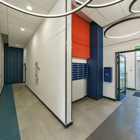 25% квартир передается с подготовкой под отделку, 75% – с полной отделкой, включая обои под покраску, плитку на стенах и полах санузлов, белые ламинированные межкомнатные двери, полный комплект сантехники. Ширина комнат в среднем составляет 3,3 м, высота потолка 2,72 м. Балконы во всех квартирах, начиная со 2-го жилого этажа!