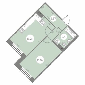 1-комнатная квартира, 45.02м2 на 2-м этаже от 11 500 000 ₽