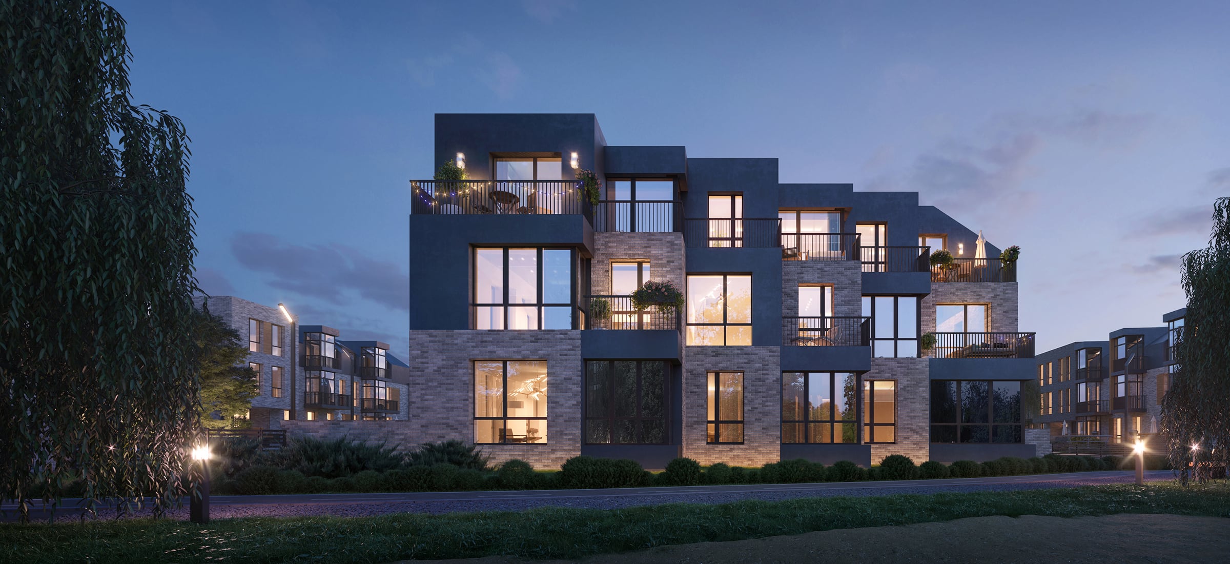 ЖК “Veren Village” — малоэтажный комплекс бизнес-класса в Стрельне. Трехэтажные домики построены из экологически-чистых материалов, а мансардные окна на последних этажах придают комплексу шарм небольшого европейского городка. Дерево-алюминиевые окна намного полезнее привычных стеклопакетов из пластика, ведь они пропускают в квартиру свежий воздух, но не создают сквозняки. Фасады облицованы кирпичом ручной формовки, а на крышах будет установлена качественная кровля с защитой от протеканий.