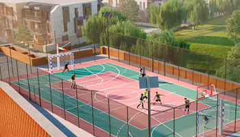 На территории ЖК Veren Village возведут современный спортивный комплекс с бассейном и тренажерным залом. На его крыше разместят специальную площадку для игры в баскетбол и футбол. Зимой она не будет пустовать — с первыми холодами здесь будут заливать каток с оригинальным освещением.