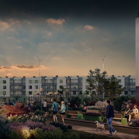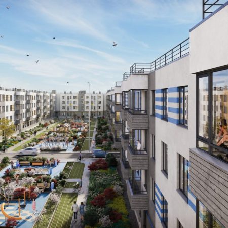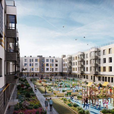 В распоряжении резидентов ЖК «Верево Сити» будет шесть гектаров благоустроенной территории. Именно здесь возводятся десять четырехэтажных домов с закрытыми дворами. Пока дети будут проводить время на игровых площадках с резиновым покрытием, вы сможете заняться своими делами или же просто отдохнуть на скамейке среди цветников и зеленых насаждений.