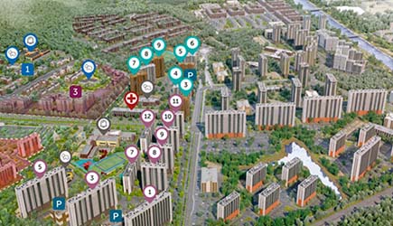 Проект создан с заботой о каждом аспекте жизни современного горожанина. Обилие зеленых зон, тщательно продуманная социальная, спортивная, культурная и коммерческая инфраструктура. Современная архитектура и планировочные решения, раскрывающие весь функциональный потенциал пространства.